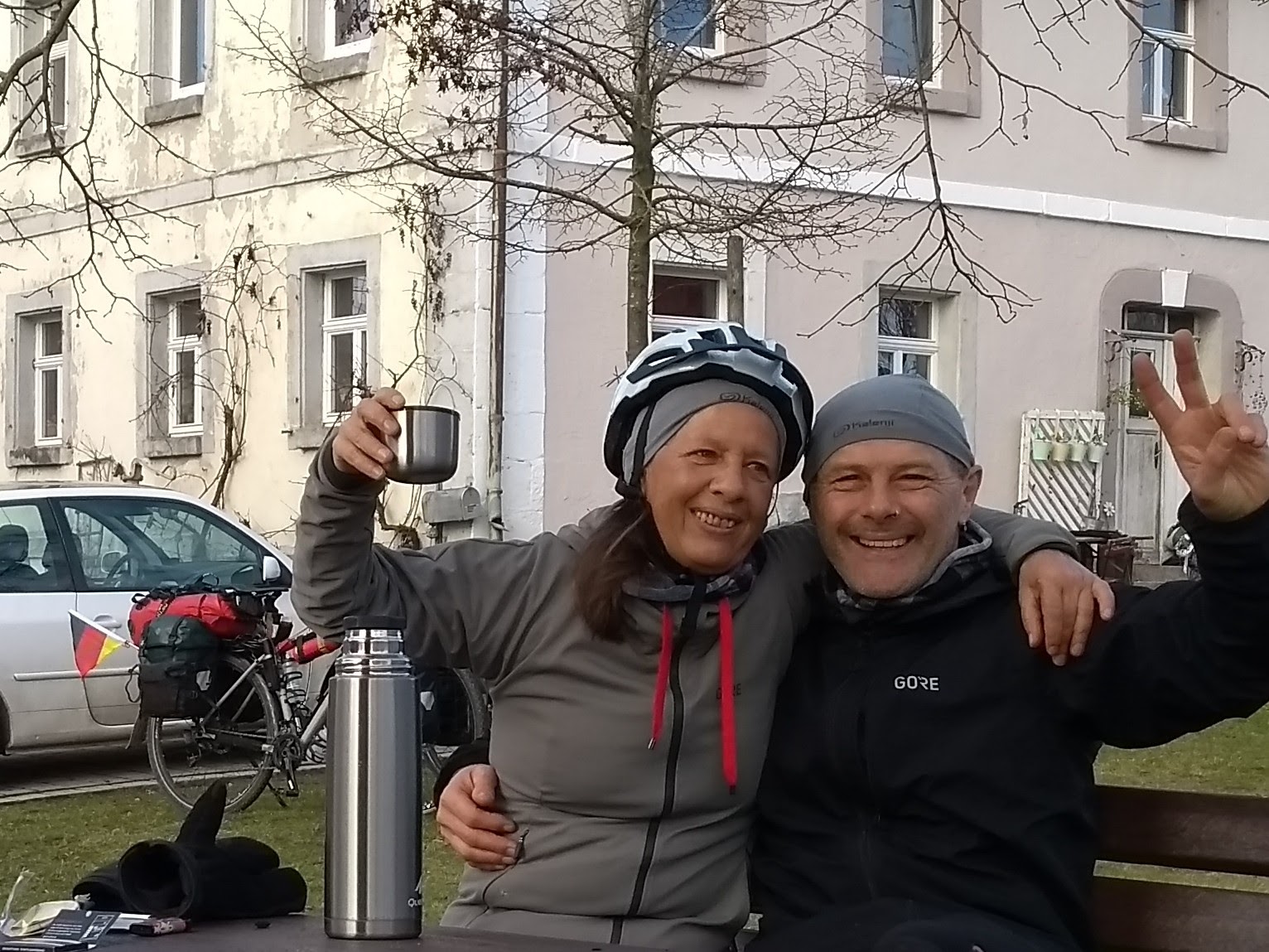 Habe die beiden lieben Menschen heute im Hotel in Augsburg kurz kennen lernen dürfen! Respekt und auch Neid auf Ihr Projekt! Wünsche euch beiden Gesundheit und eine tolle aufregende Zeit inklusive tollen Erlebnissen!